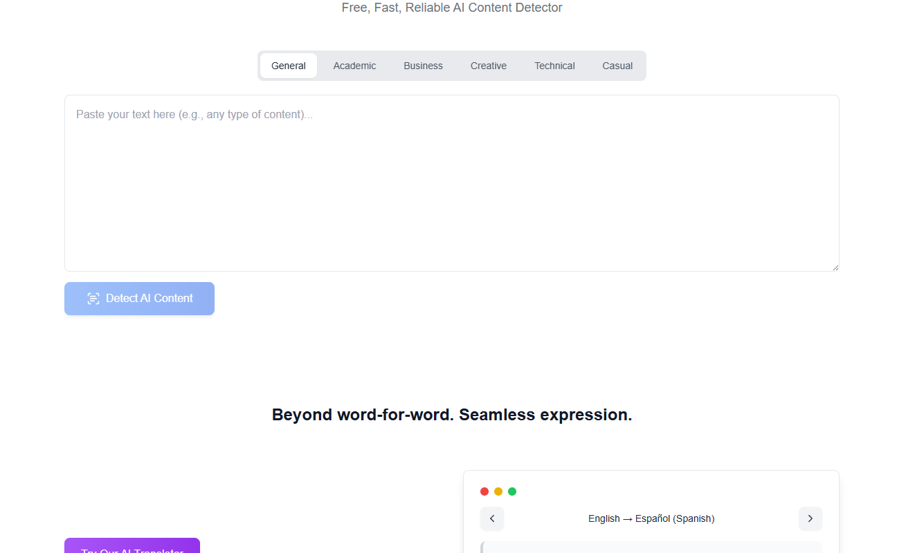 - Multi-language Support: Detects AI-generated content in over 200 languages, including English, Chinese, Japanese, and Korean.